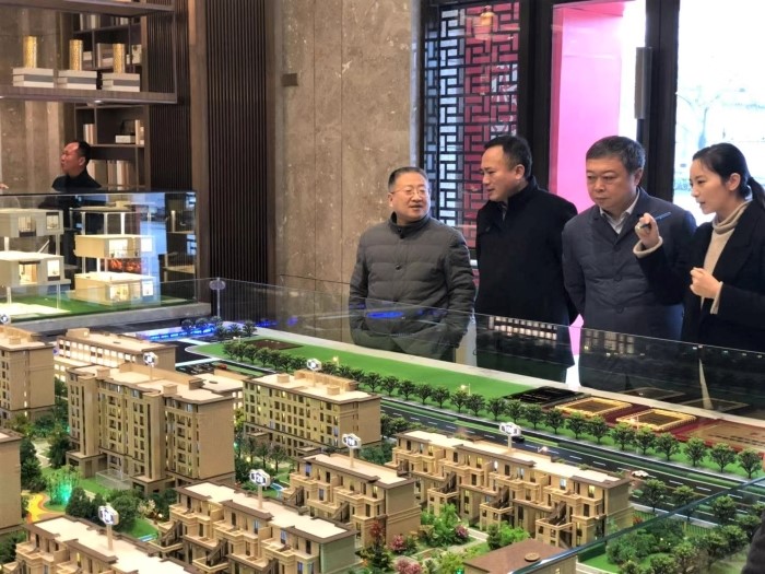 王宏在華建乾院售樓處聽取了項目開發、銷售的進度報告,詳細了解了小區戶型特點和配套情況,并針對一些產品細節提出完善意見。隨后,王宏前往地產集團調研座談,聽取了地產集團總經理徐剛對2019年工作要點以及未來三年重點工作的匯報,各項目負責人分別匯報了項目進展情況及下階段工作安排。王宏對地產集團全體領導干部過去一年的辛勤努力表示慰問,對于地產集團下一步發展提出幾點要求:一是堅持客戶導向,加強產品設計。二是強化施工監管,打造精品工程。三是注重學習交流,探索養老地產合理開發模式,努力將95地塊項目打造成揚州嵌入式養老地產新標桿。